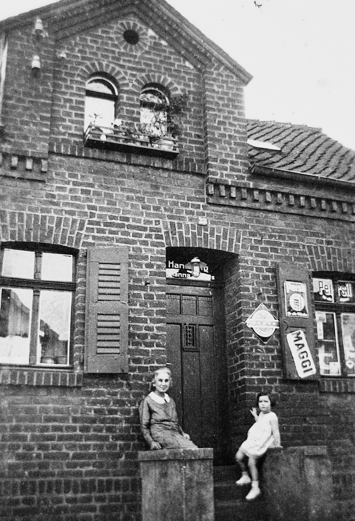 Johanna Moses vor ihrem Laden mit Großnichte Ilse Moses